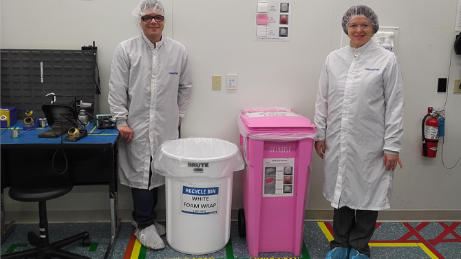 Taking the initiative to improve the effectiveness of our environmental management system, employees approached the company’s primary packaging supplier to investigate the feasibility of recycling/reprocessing the foam. Partnering with our supplier, employees implemented a very successful foam recycling program which is mutually beneficial for both companies and the environment. The program reduces waste while at the same time reducing the raw material inputs into our supplier’s manufacturing process.