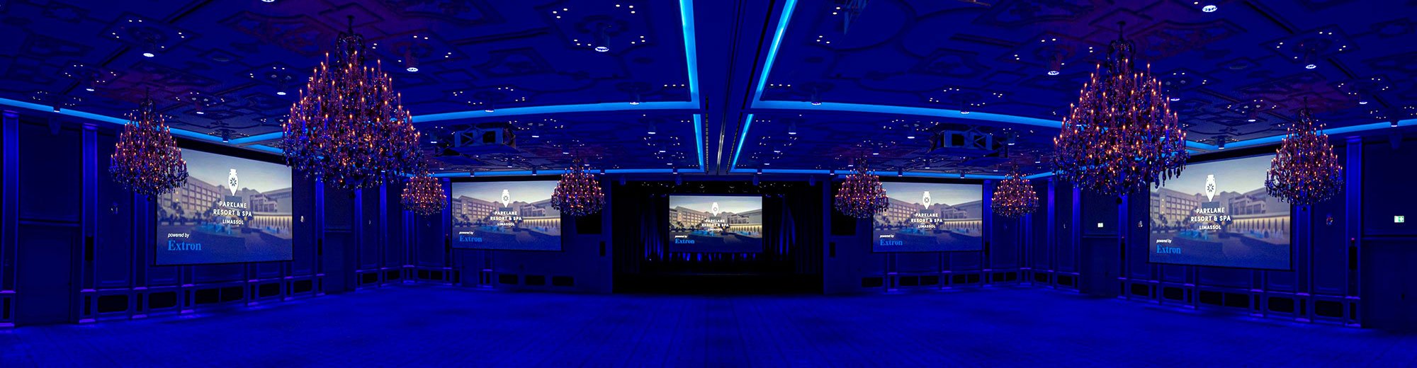 An onsite AV team inside the hotel operates the technology on a day to day basis, with ALA’s teams available for any specialist requirements. “There’s a lot of support involved for this caliber of installation, and there is always someone on call.” The versatile room – suitable for social and business events – can also be divided into two sections, and cater for up to 600 persons for dinner on round tables, with space for a dance area.
