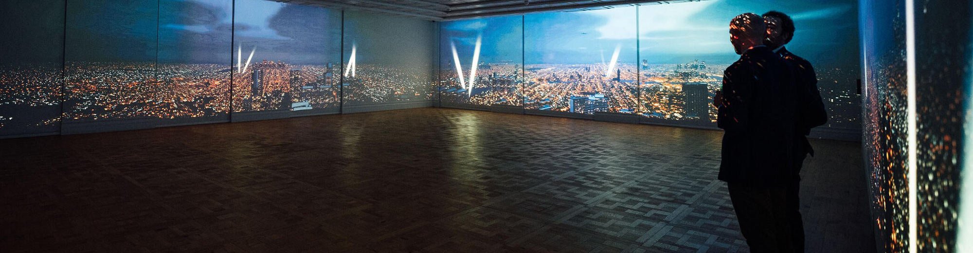 The Ray Dolby Room has enormous windows on two sides so blinds were needed to block out the light when projection was running. “The content includes a projection of the white walls with windows and London street scenes behind the blinds to restore the impression of the room when the blinds are down,” added Pal Roppa. “BAFTA can choose to layer in different scenes outside the windows, say if the client wanted to see downtown Tokyo or the countryside outside. Or they can change the mood and project vivid colors on the walls, creating a Star-Trek effect. They can load customer logos, modify views, or, if needed, could change aspect ratios of content to fit the room.” BAFTA also commissioned a truly fantastic night-time skyline of London with glittering lights, also developed remotely in Belgium by a designer using the AI function in Pandoras Box.