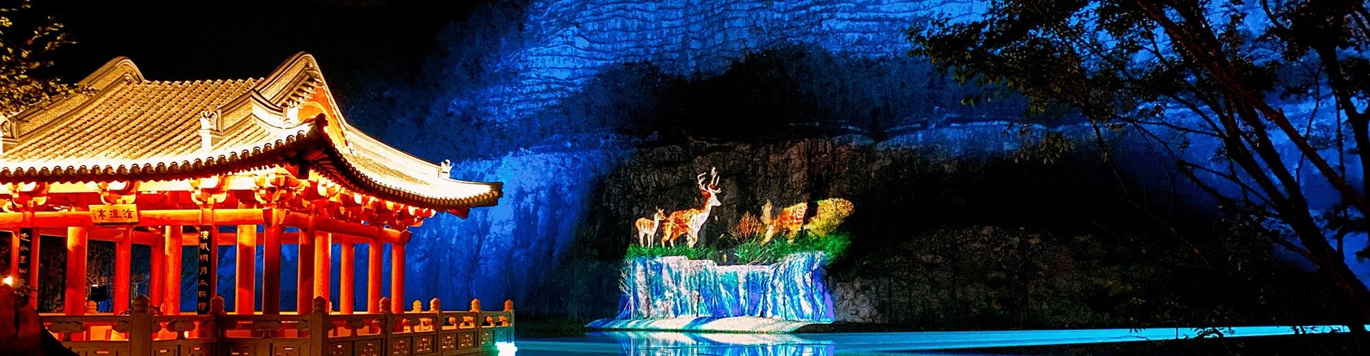 Among the major highlights of the park are re-creations of traditional gardens situated in the 13 cities of Jiangsu province including Nanjing Garden, Suzhou Garden, Wuxi Garden and Taizhou Garden – which aptly demonstrate Jiangsu’s renowned garden culture and landscaping skills. After night falls, the park is bathed in a blend of blue, red and yellow lights amid a spellbinding light show that includes stunning projections on a hillside using four Christie DWU2022-HS 1DLP® laser projectors installed by Zhongqing Yingye Group.