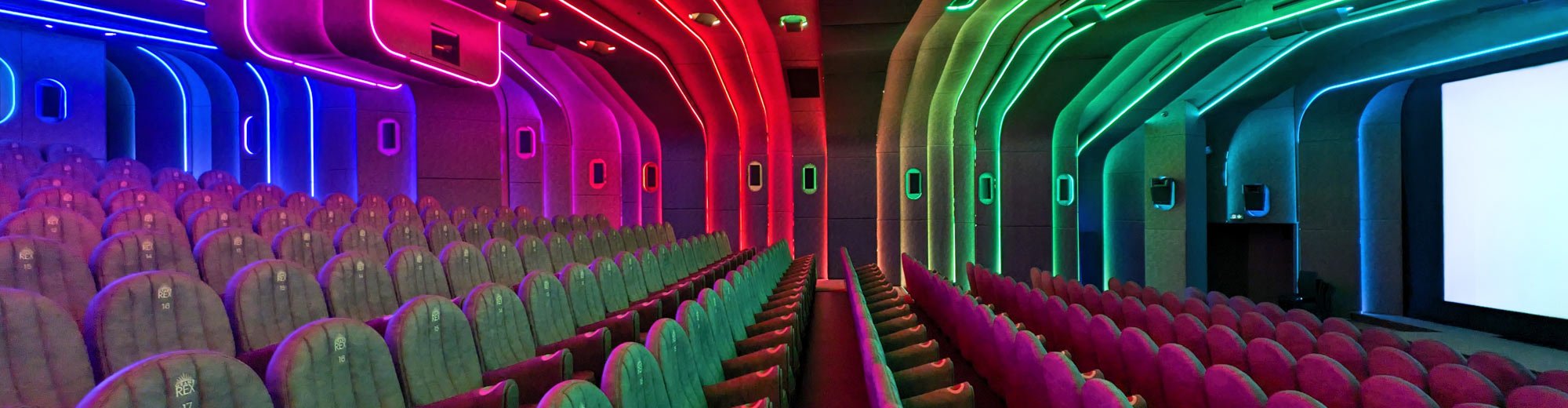 With the projector now housed in an enclosure in the ceiling, the former projection room at the back of the screen has been replaced by a stylish bar area, allowing guests to purchase refreshments without having to leave the new atmospheric space. ABP was the architect responsible for the redesign of the INFINITE room, which is located underneath Le Grand Rex’s ‘Le Grand Large’ auditorium. The customizable LED lighting system allows the cinema to color-match the film being screened. Brown was chosen as the colour for the seats and the walls to absorb optimum light and further enhance the lighting effect. Le Grand Rex now offers seven screens throughout its chic Art Deco building, which first opened its doors in 1932.