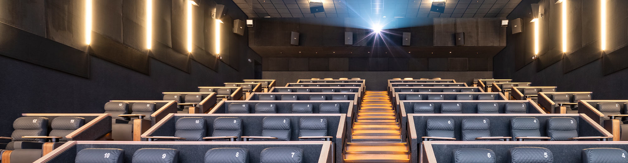 The largest theatre, with a 14 x 7.56-meter (45 x 24.8 foot) screen, is equipped with a Christie CP4425-RGB projector. In the remaining nine auditoriums, Christie CP2420-RGB and Christie CP2309-RGB models have been installed. All of them incorporate CineLife+™ electronics and RealLaser™ illumination technology.