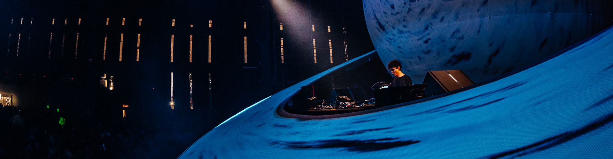 Illusionize in Saturn requested that the planet Saturn and its rings be projected where the DJ was situated. To achieve this, On Projeções used two Griffyn 4K50-RGB pure laser projectors to cover a 30 x 20-meter (98 x 66-foot) surface with images simulating Saturn’s environment, with a total resolution of 3840 x 2160 pixels.