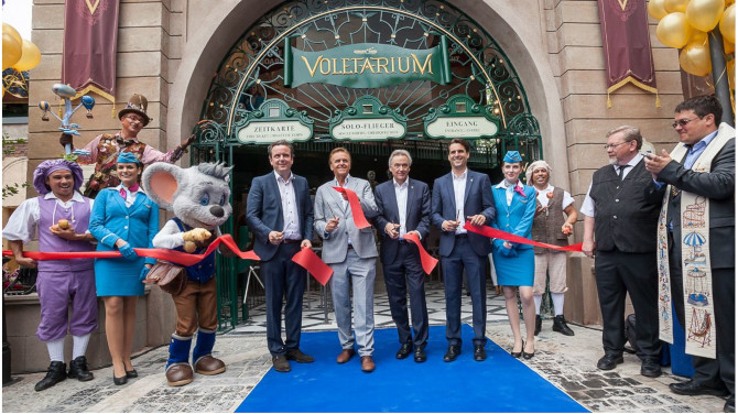 Voletarium位于该乐园的德国主题区,它将带领游客们体验梦幻的全欧之旅。为了在圆顶幕上呈现精彩绝伦的投影效果,飞行影片由14个场景组成,包含全球闻名的欧洲城市风光和自然景观。它们所描绘的故事完美的契合该乐园的欧洲主题区,更是老少皆宜。每一季都有550多万名游客从世界各地来到这里,15个不同欧洲国家主题区内的100多个景观及表演将游客们引入不同的世界。