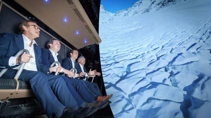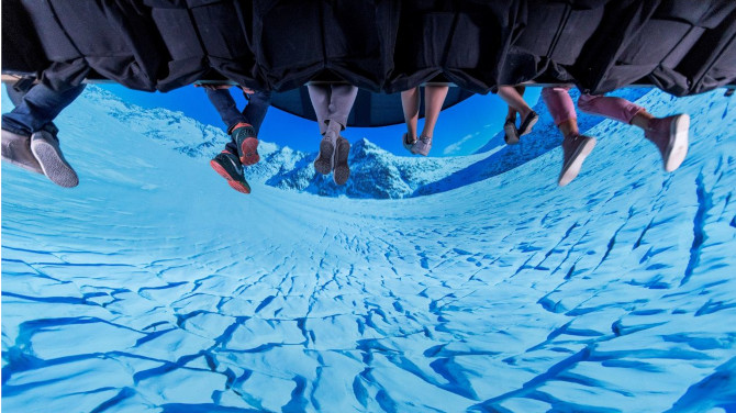 "我们提出了多通道投影解决方案,因为它不仅能够实现更高的亮度输出,同时分辨率也更高。除此以外,您最终会获得更为逼真的身临其境之感,这比仅在中心布置一台投影机的效果更好,"Gellermann 如是说。选择单台投影机的另一项劣势在于"最佳位置",即获得理想观览体验可以乘坐的位置。而使用单台投影机那么从观众位置来看,此点恰位于正中央。但此处却无法供观众使用。Voletarium所采用技术的另一项优势在于乘坐系统未与投影机相连接,这便意味着他们不会感受到任何震动。