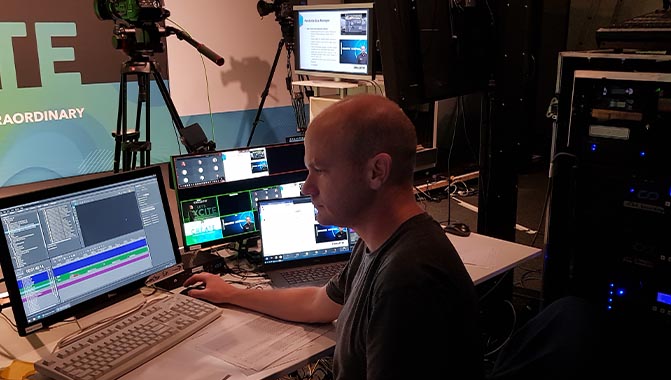最近,这间全新的演播室举办了一场科视Christie CONNECT 潘多拉魔盒线上发布会,会议内容包括产品介绍、演示和问答。Steinbrecher 表示:“由于我们有四台摄像机和两种计算机信息流,我们在 CONNECT 会议中使用了 Spyder X80 处理器。我们把会议内容传输到一个 YouTube 信息流、一个录音信息流、演播室里的几台显示器,以及 Zoom 中。因为我们的输入和输出量巨大,所以使用 Spyder X80 处理器是明智之举。为保持社交距离,团队还使用科视Christie Terra 以便在直播间和一个独立控制台间传输信号。