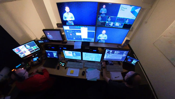 他补充道:“如果您只有像公司标志一类的简单背景,只需通过打开摄像机,就可以使直播间准备就绪,这一点与 LED CAVE 演播室截然不同。”像 PPT 一样的流媒体内容也可以轻松演示出来。演示者可以通过全屏或画中画模式进行演示。Steinbrecher 表示:“潘多拉魔盒的无限视频层即可实现这种灵活性。”