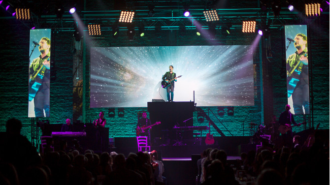 Booster, from Mönchengladbach, is one of the most successful cover bands in Germany, having given over 2,000 concerts during their thirty-odd-year history. For 14 years now, the “Booster Silent Night” series of concerts, which take place during the Christmas period, has become an event not to be missed for many locals. With audiences now numbering more than 7,000 people, over the past few years it has developed into one of the biggest events in the Lower Rhine region. And this year’s sold out show was no different: the well-loved band delighted fans of all ages in the festively decorated “Kunstwerk” events venue in Mönchengladbach with a mixture of international hits, rock and pop classics as well as Christmas melodies. Like the year before year, projection and display technology from Christie came into play.