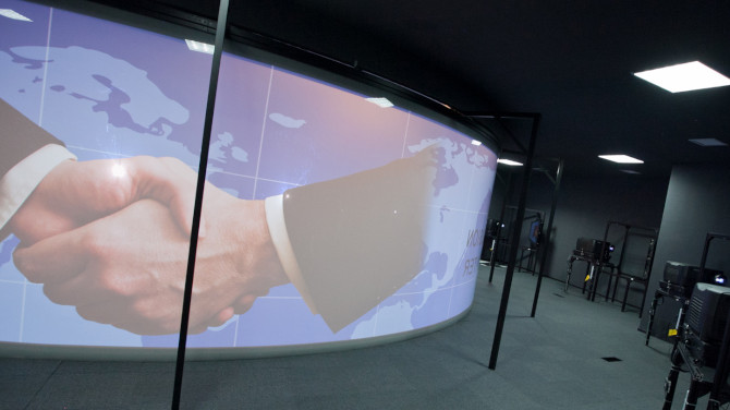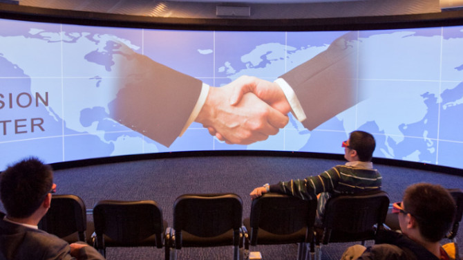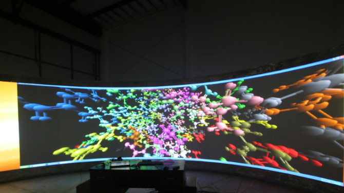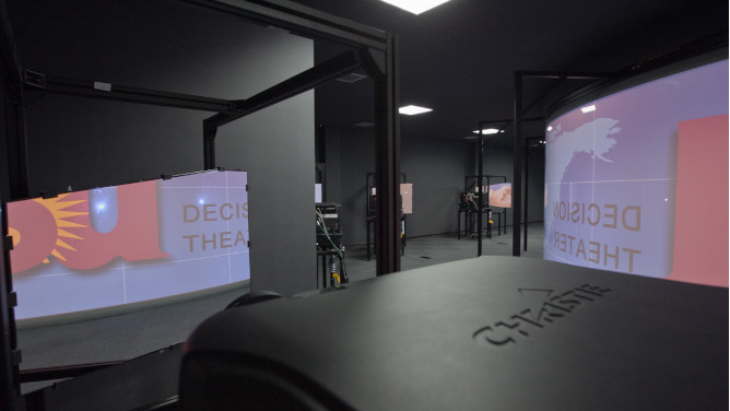 The 240-degree, floor-to-ceiling curved advanced visualization display helps university, government and business representatives who use the facility make better decisions for a range of programs. The 3D capability of the system will be used on urban planning and urban development to assist public management decision-making.