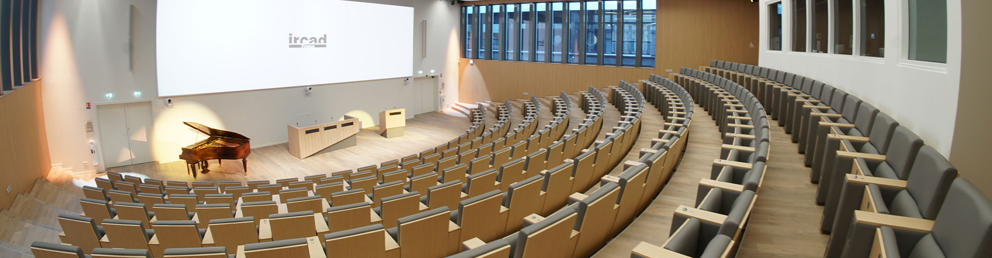 IRCAD(消化系统癌症研究所)是全球备受认可的微创手术外科研究和培训机构,1994 年由雅克·马雷斯科教授在斯特拉斯堡创立,每年都有超过 8,800 名外科医生在此接受专业培训。IRCAD 3 占地 2,400 平方米,是专用于机器人手术的新建筑,也是斯特拉斯堡大学医院 IRCAD 的最新设施,配有一系列高端音视频技术,力求打造身临其境的学习体验。