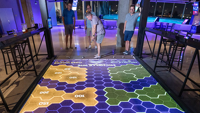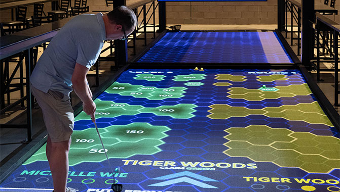 There are currently three inaugural putting games to choose from, designed for all skill levels (with many more currently being dreamed up for future rounds). Guests hit targets to score points, instead of aiming for a cup, while cameras track each player’s ball on the green in real time. “The project started off with an R&D effort. We were curious to see if we could track any golf ball – with or without a marker and regardless of color - and then do a gameplay overlay,” explains David Beaudry. “That was about half our efforts for the first year: building the math and the technology in the camera arrays to be able to track golf balls over a course of any size.” The R&D resulted in the ability to track balls within a few millimeters of their location on a putting green.