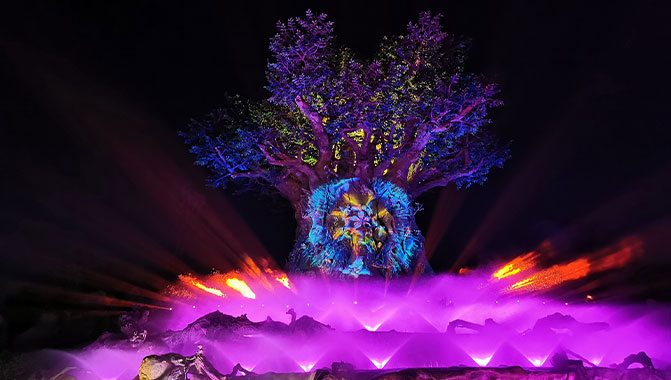 Widely perceived to be the centerpiece of the theme park, the Tree of Life sculpture features a massive trunk measuring 26 meters in diameter that is adorned with intricate animal carvings by talented artists. The towering structure serves as a musical fountain during the day, and transforms into the canvas of a mesmerizing projection mapping show titled “The Animal Kingdom” when night falls.