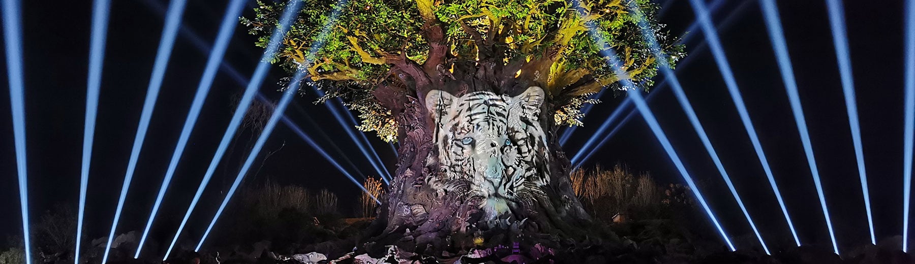 位于该主题公园中心位置的“生命之树”雕塑拥有直径 26 米的巨型树干,树身上布满出自艺术家之手的精美动物雕塑。白天,这座高耸的雕塑是音乐喷泉;夜幕降临时,则会上演一场以“动物王国”为主题的大型投影秀。
