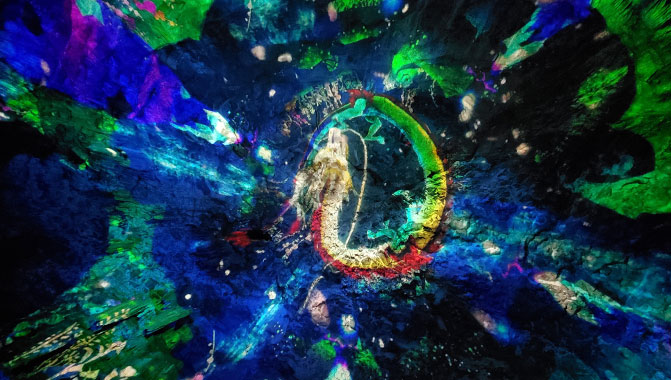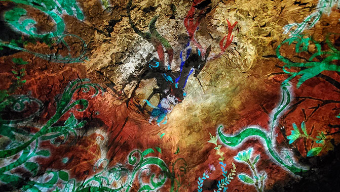 Spectacular visuals are projected on the massive ceiling of the cave’s