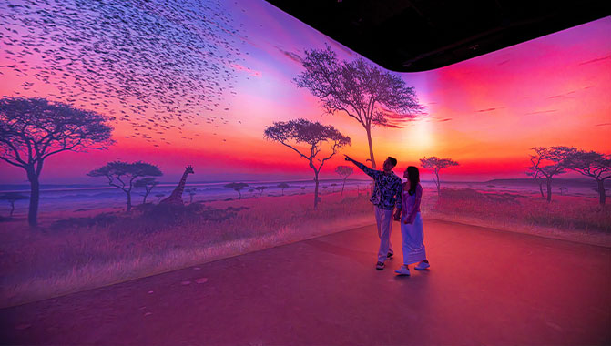 Since opening, Illuminarium has been dazzling visitors with its initial opening show, “SPACE: A Journey to the Moon and Beyond” and now “WILD: An Immersive Safari Experience”, an interactive and multi-sensory experience that takes guests to the wild savanna. To ensure that the experience remains spectacular, Christie Professional Services provides 24/7 service and support for the complete AV system in Illuminarium.
