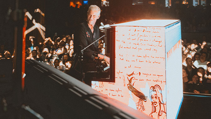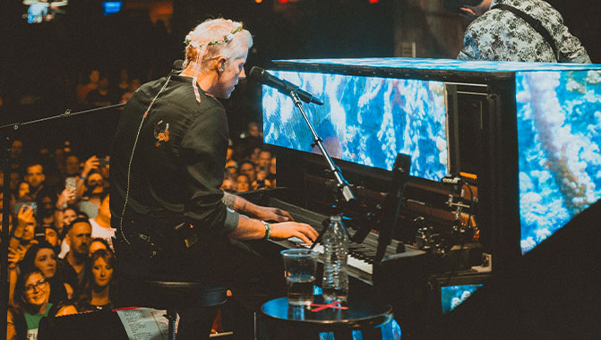 Alt-rock band's reunion tour features a piano wrapped in Christie MicroTiles LED displaying images and lyrics