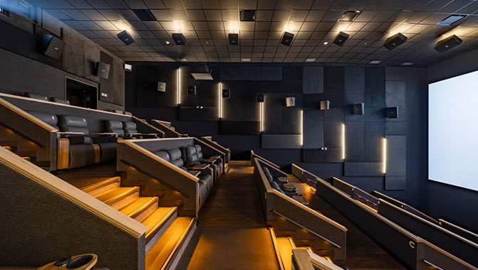 The largest theatre, with a 14 x 7.56-meter (45 x 24.8 foot) screen, is equipped with a Christie CP4425-RGB projector. In the remaining nine auditoriums, Christie CP2420-RGB and Christie CP2309-RGB models have been installed. All of them incorporate CineLife+™ electronics and RealLaser™ illumination technology.