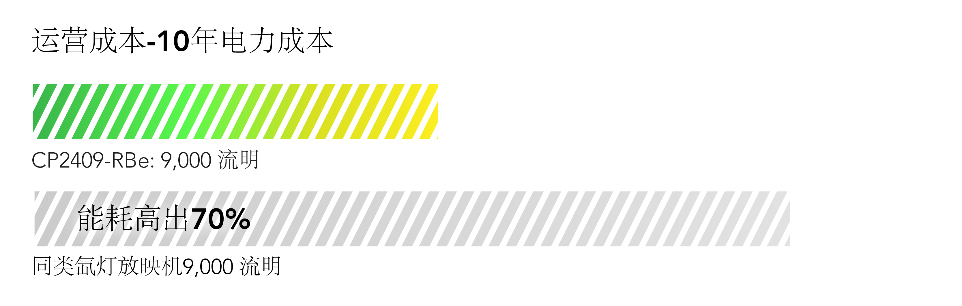运营成本(以百分比表示):与同类氙灯放映机相比,平均运行成本低 70%