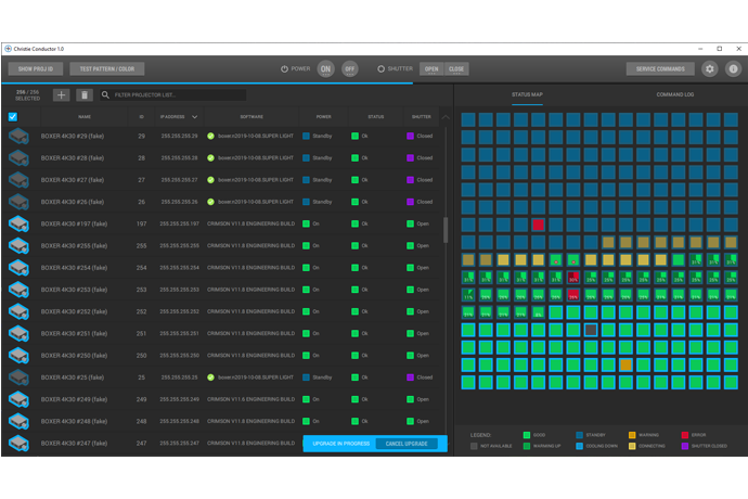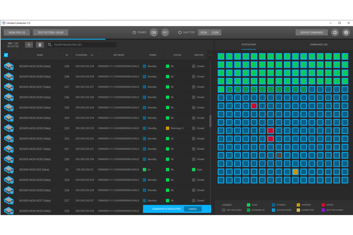 - Health check and monitoring via list and status map – Conductor allows you to monitor and control up to 256 projectors1. With the user-friendly interface you can instantly see exactly which ones require attention.