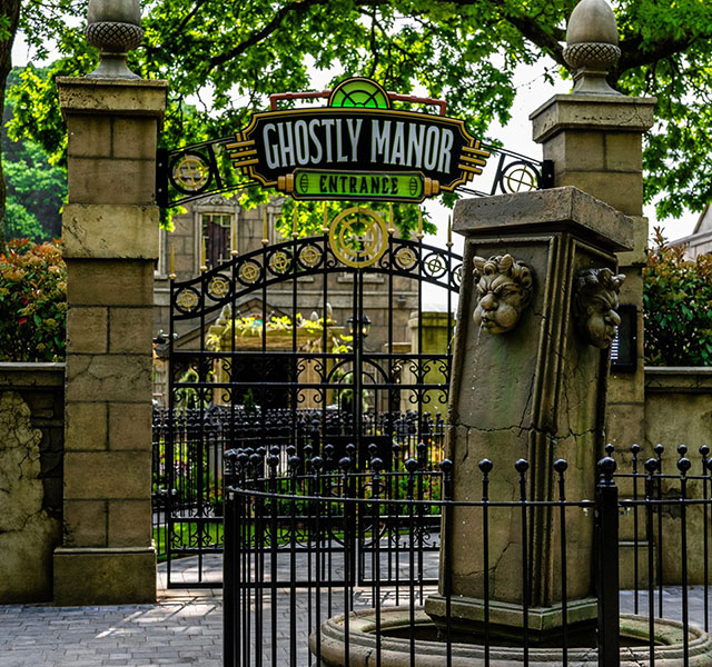 Mischievous ghosts. Misbehaving spirits. And a Phantom Phaser to capture them as you ride Ghostly Manor, Paultons Park’s new interactive, indoor dark ride. Opened in May, Ghostly Manor is a £3.5 million (USD$4.7 million) attraction that transformed the park’s former 4D cinema into an ambitious dark ride experience. Guests travel through a haunted manor and use their Phantom Phasers—onboard “blasters”—to capture the wayward spirits. At the end of the ride, they’re presented with their “ghost-catching score.”